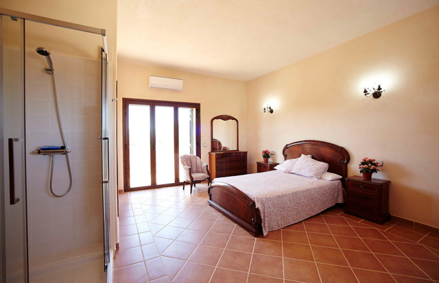 Im Obergeschoss befindet sich das 5. und größte Schlafzimmer mit Bad en suite, Klimaanlage und einem kleinen Balkon mit einem phantastischem Weitblick. Diese schöne Aufteilung über 2 Etagen sorgt für Privatsphäre.