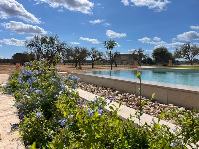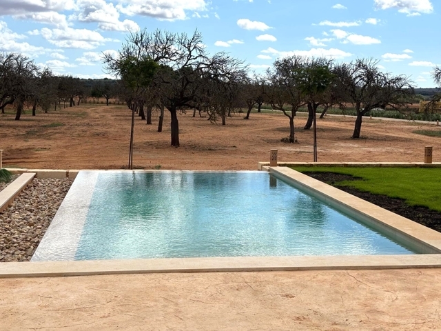 Entourée de nombreux amandiers, on peut profiter du calme et de l'intimité dans une nature idyllique. Le vaste espace extérieur avec la belle piscine et la terrasse de 160 m² complètent l'image globale de cette petite oasis.