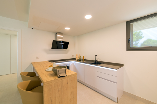 Location: Das Apartment liegt im schönen Wohngebiet EL PARAISO. Bis zum Dorf Sa Rápita mit seinen Geschäften und Restaurants sind es nur 1,5 km und der beliebte Naturstrand ES TRENC und der große Yachthafen sind nur 2km entfernt. Weitere Informationen zum Ort finden Sie HIER Equipment: Isoliermauerwerk, Isolierverglasung, Klima-Anlage warm/kalt mit Luftwärmepumpe, Fußbdoenheizung in den Bädern, Carport und Abstellraum, Einbauschränke und eine komplett möblierte und ausgestattete Küche, OG-Wohnungen mit Fernmeerblick, südliche Ausrichtung, Gemeinschaftspool & -Fitnessraum Inne: Die Fertigstellung wird im November 2024 sein. Link Webseite: https://www.azur-mallorca.com/sa-rapita.xhtml